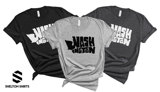 Washington State Word Art Unisex Bella T-shirt - Pacific Northwest - WA State Shape