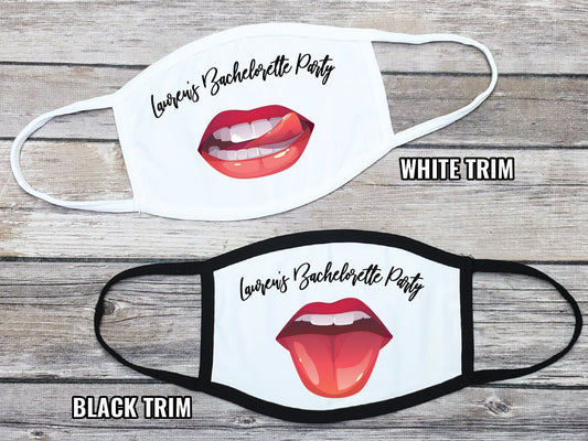 Bachelorette Party Lips Face Mask with Personalized Text - Single Mask