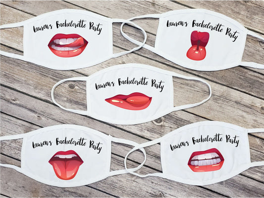 Bachelorette Party Lips Face Mask with Personalized Text - Set of 5 Masks