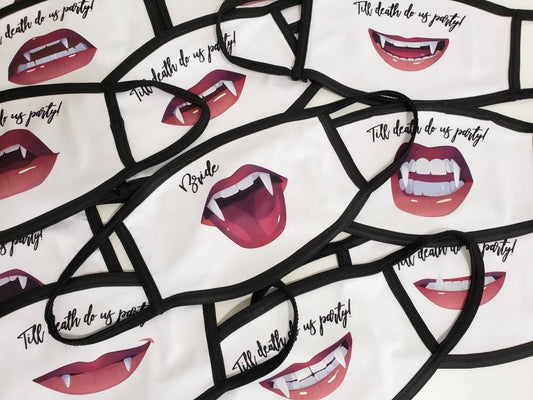 Vampire Bachelorette Party or Halloween Party Lips Face Mask with Personalized Text - Set of 5