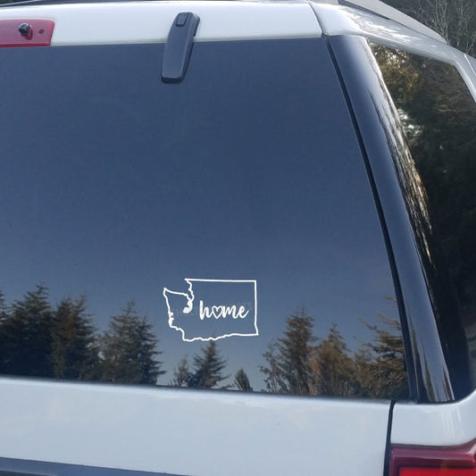 Washington State Outline with Script Home and Heart Vinyl Decal Car Sticker