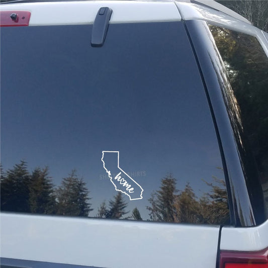 California State Outline with Script Home and Heart Vinyl Decal Car Sticker