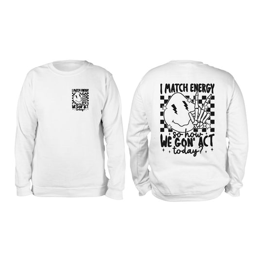 I Match Energy How We Gon Act Today White Crewneck Sweatshirt