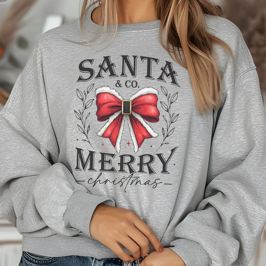 Santa and Co Bow Merry Christmas Crewneck Sweatshirt