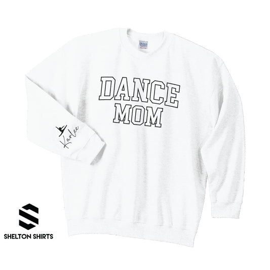 Glitter Dance Mom with Name on Sleeve Sweatshirt, Hoodie or T-shirt
