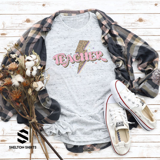 Teacher with Leopard Print Lightning Bolt Cute Teacher Shirt