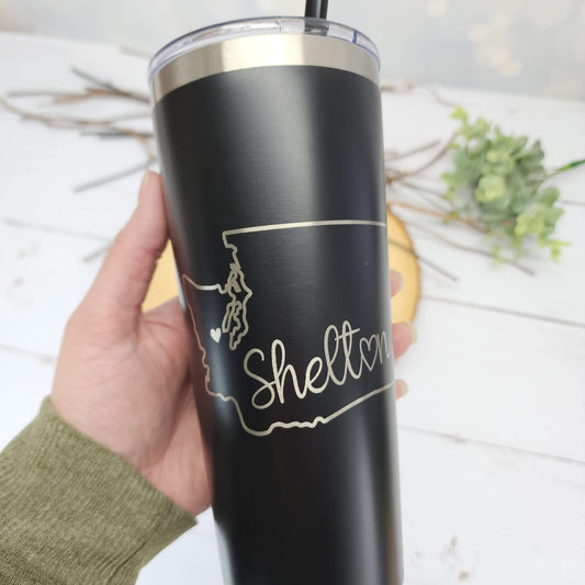 Shelton Washington State Outline Engraved Tumbler
