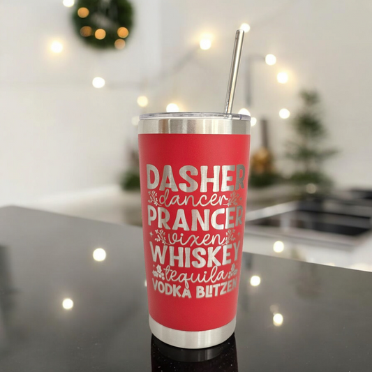 Dasher Dancer Prancer Whiskey Tequila Vodka Blitzen Christmas Tumbler
