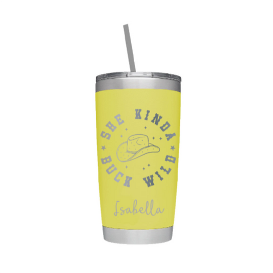 She Kinda Buck Wild Laser Engraved Tumbler with Personalized Name