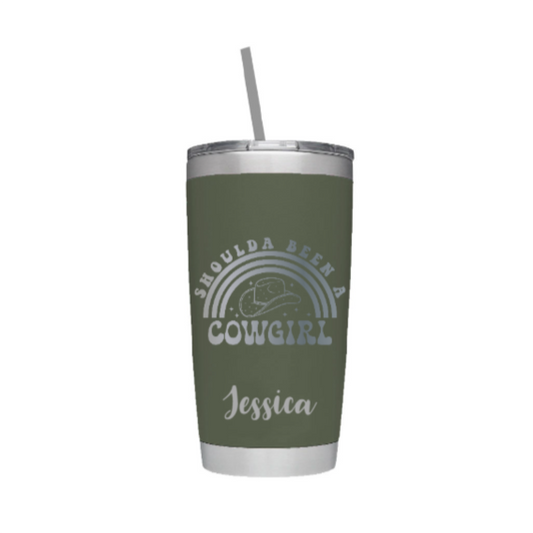Shoulda Been a Cowgirl Personalized Laser Engraved Tumbler