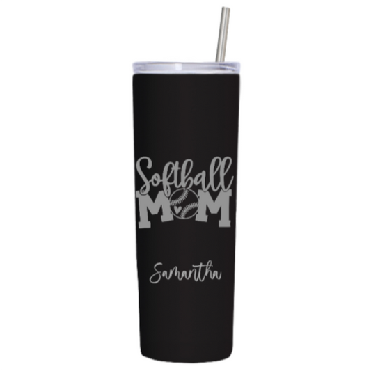 Softball Mom Engraved 20oz Skinny Tumbler - Name Engraved for Free under Graphic