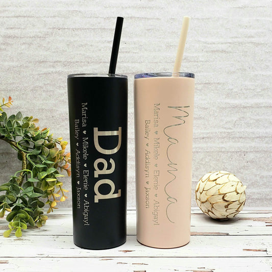 Dad with Kids Names Laser Engraved Matte Tumbler