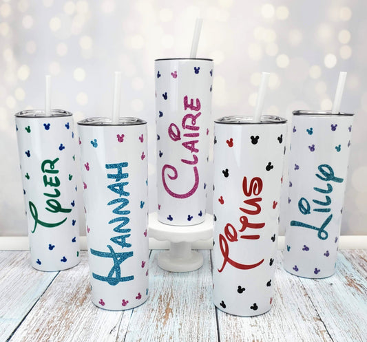 Mickey mouse heads confetti tumbler with personalized name up the side