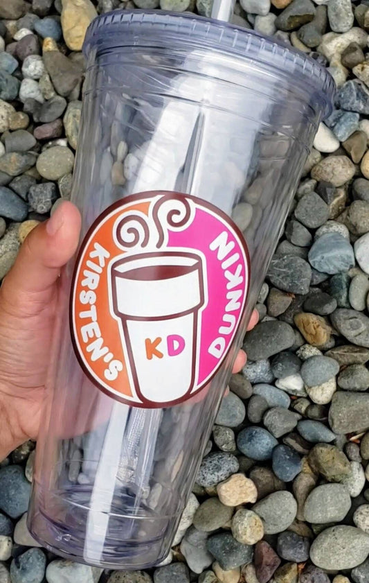 Dunkin donuts inspired printed decal on double wall high grade acrylic tumbler