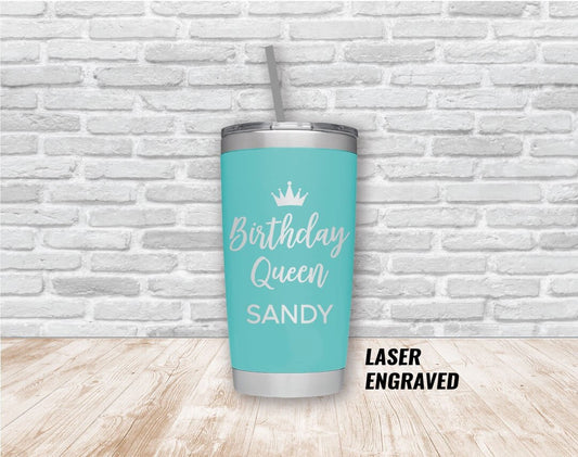 Birthday Queen with Crown Laser Engraved Tumbler with Personalized Name