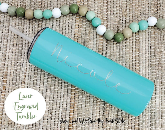 Name Laser Engraved Tumbler with Your Choice of Script Font on the side