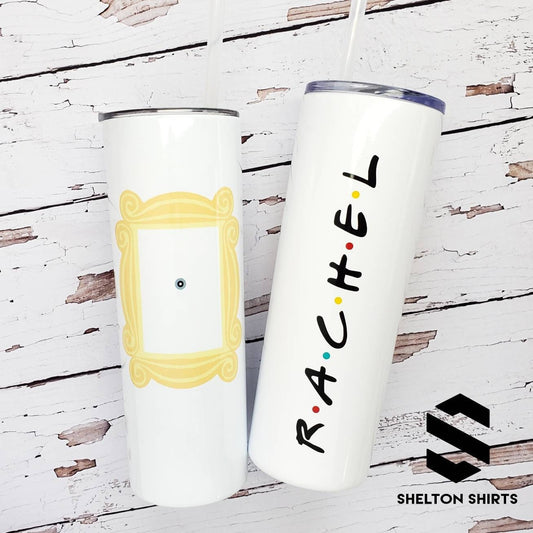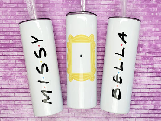 Tumbler with Yellow Frame and Peephole and Your Name in the F.R.I.E.N.D.S style on the back