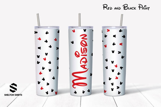 Mouse Heads Confetti Tumbler with Personalized Name up the side