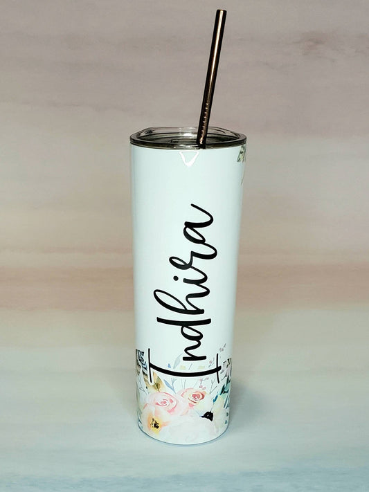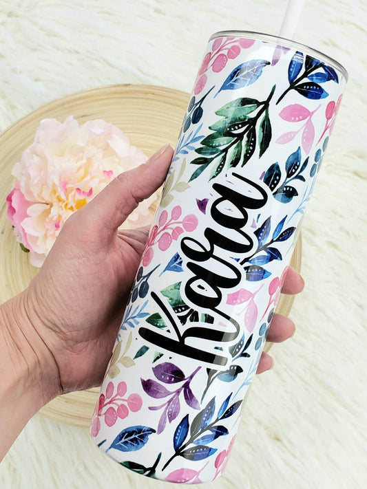 Pretty Watercolor Floral Tumbler with your Name