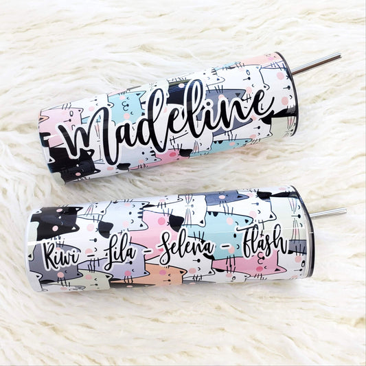 Cat Cup Tumbler with Your Name and Your Cats Names