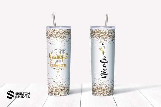 Rose Gold Glitter Print Life is More Beautiful with Balayage Custom Tumbler