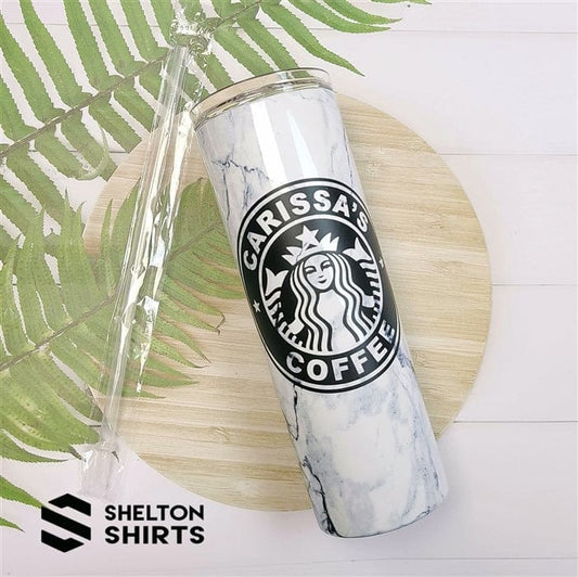 Marble Tumbler with Matte Black Starbucks Logo Decal