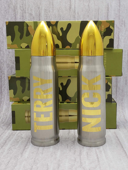 Silver Bullet Tumbler with Personalized Name in Gold Chrome
