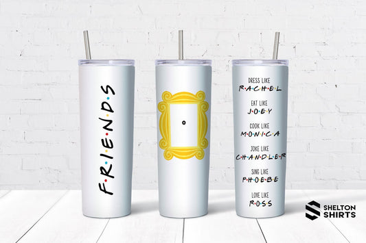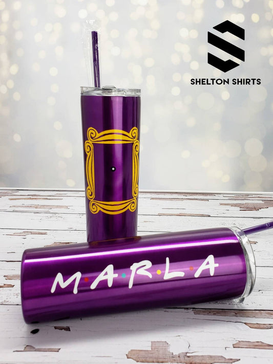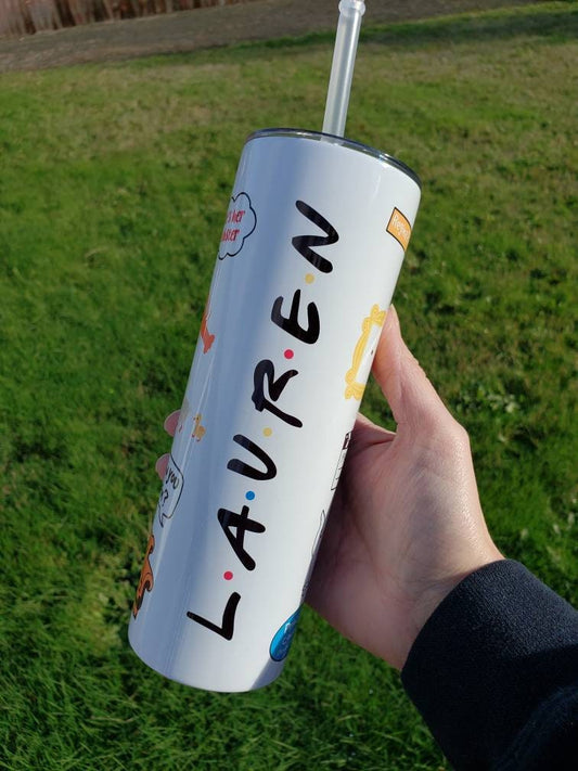 Tumbler with Friends Graphics All Over and Your Name in the F.R.I.E.N.D.S style on the back