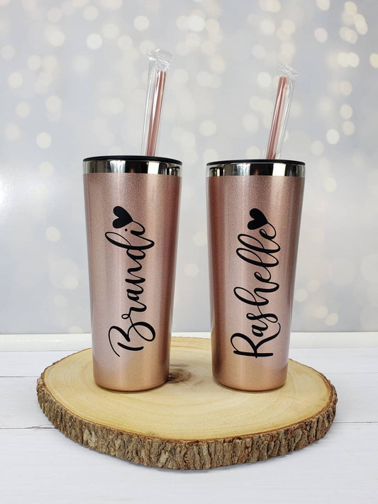 Rose Gold Tumbler Personalized Name with Heart - Bridal Party Gift