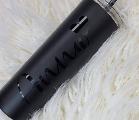 Matte Black Tumbler Glossy Black Name with Heart - Bridal Party Gift