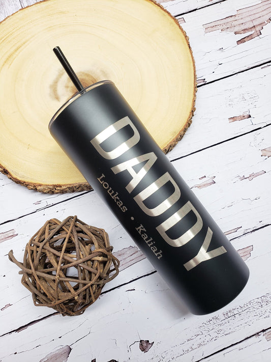 Daddy with Kids Names Laser Engraved Matte Black Tumbler