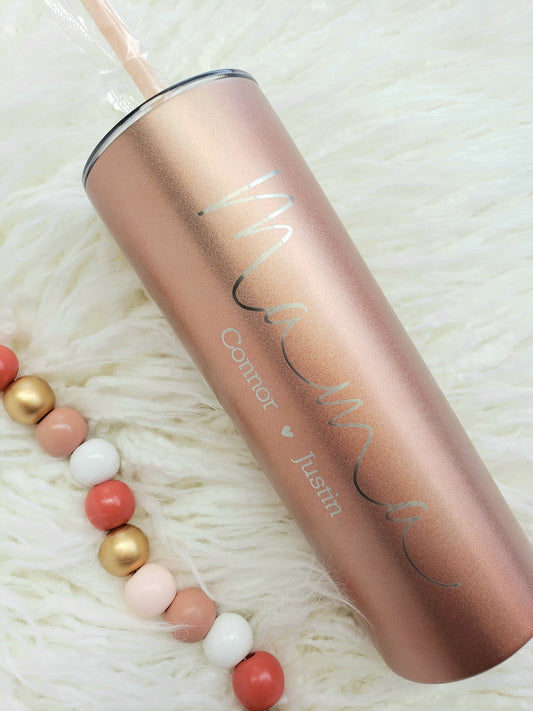 Mama with Kids Names Laser Engraved Matte Blush Tumbler with Straw - Mother's Day Gift