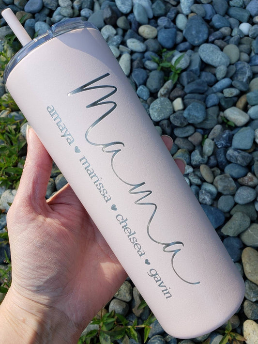 Best Seller! Laser Engraved Mama with Kids Names Tumbler - Christmas Gift