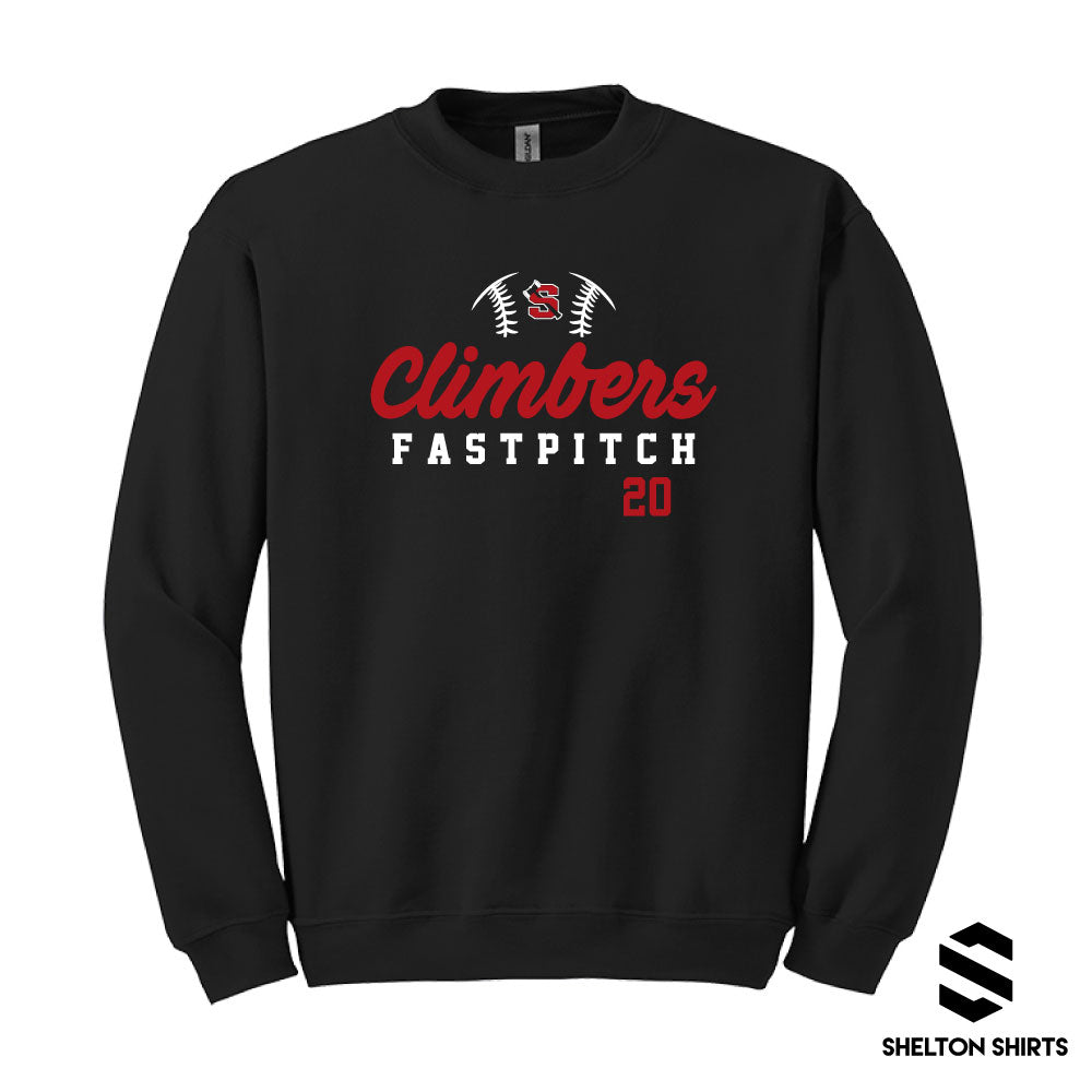 Half Ball with Shelton High School Logo Climbers Fastpitch Hoodie, Crewneck or T-shirt