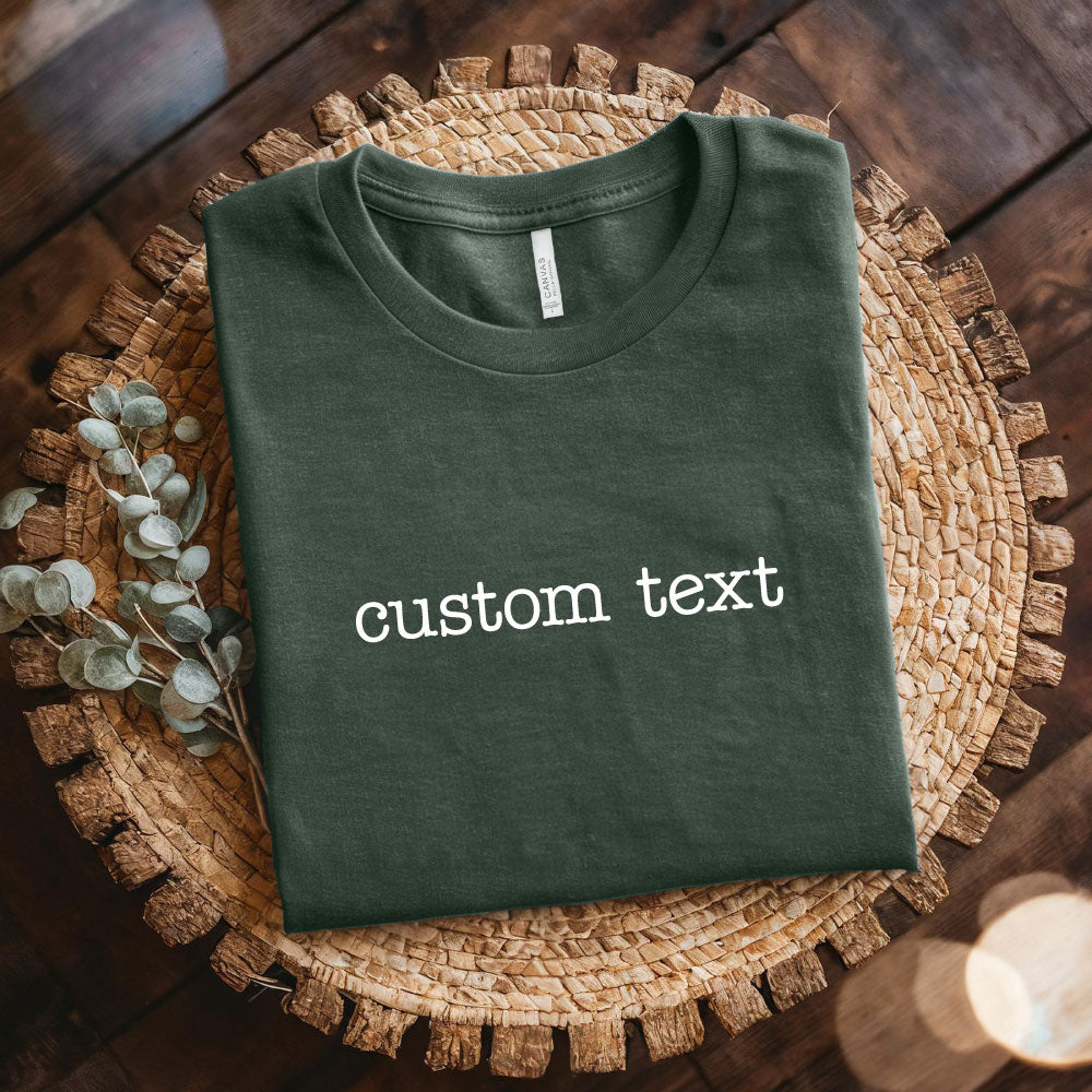 Make your message loud and clear with our Custom Text Shirt! Design your own wearable statement by choosing exactly what you want to say. Whether it's a witty one-liner, inside joke, or personal mantra, this shirt puts your words front and center. Crafted for comfort and style, it's the perfect way to express yourself and spark conversations wherever you go. Stand out from the crowd with a shirt that's uniquely, unmistakably you.