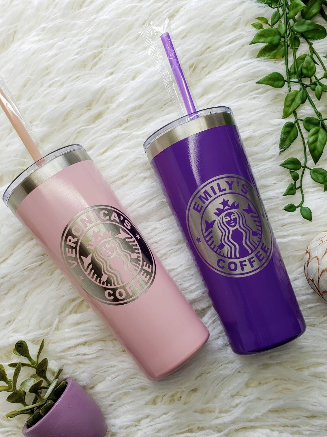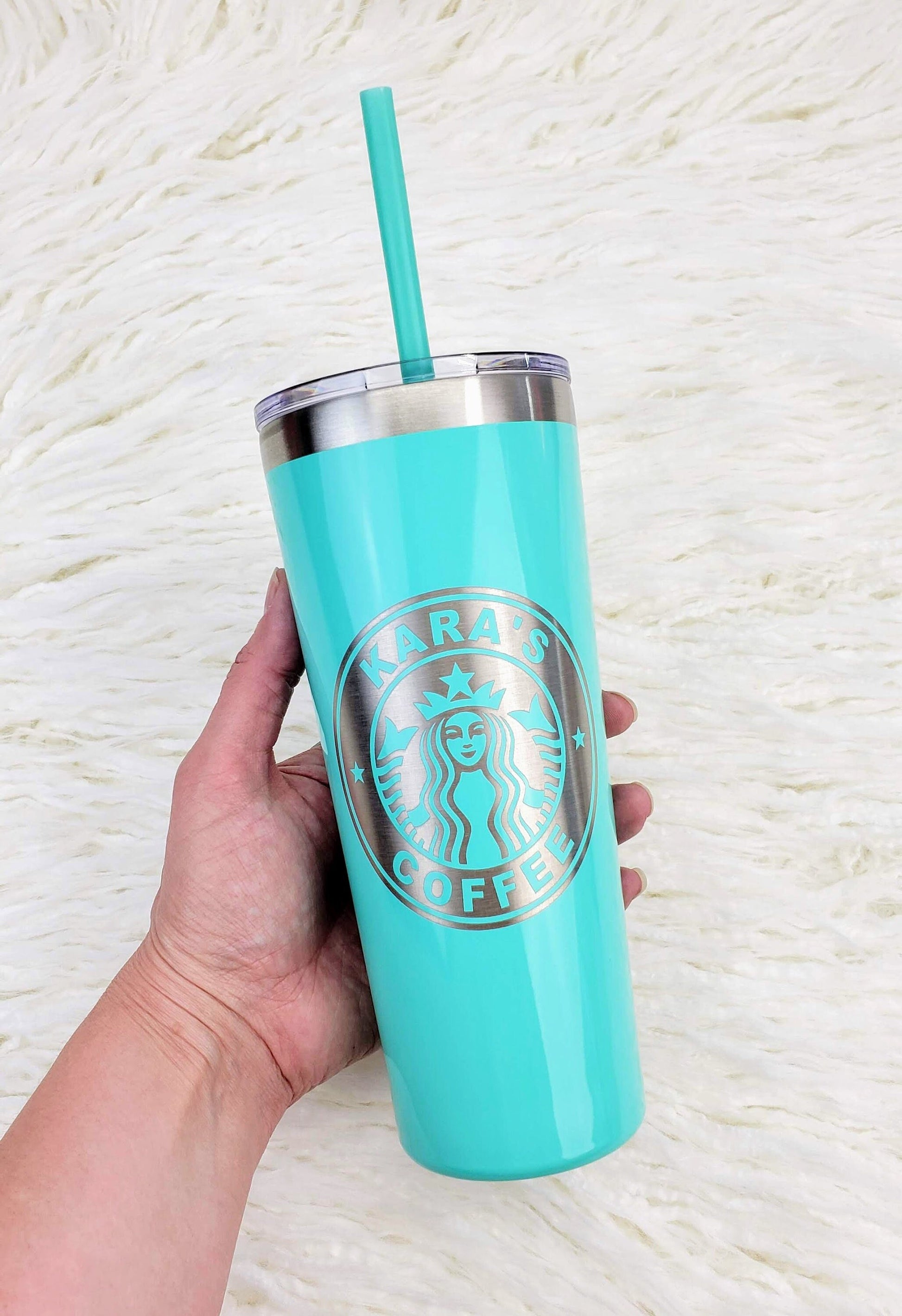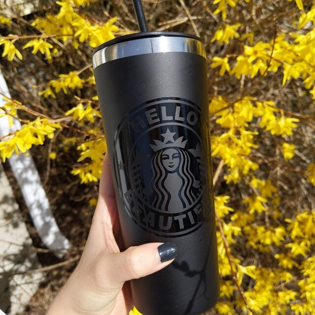 Matte Black Tumbler with Matte Black Personalized Starbucks Logo Decal