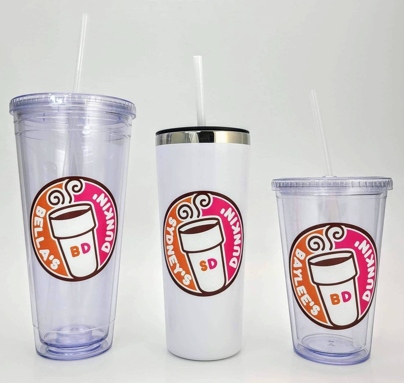 Personalized Dunkin Donuts Printed Waterproof Sticker - Apply to your favorite tumbler, cup or mug