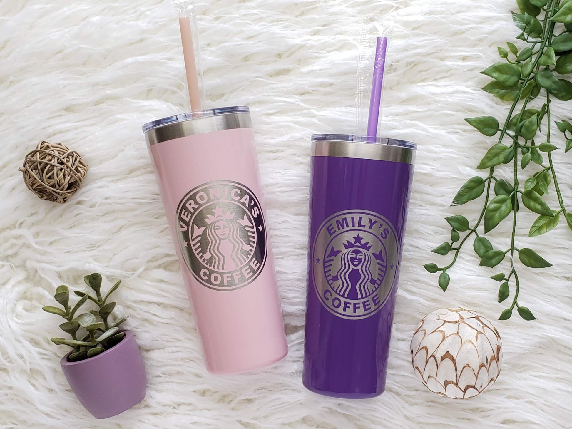 Hot/Cold Tumbler with Engraved Personalized Starbucks Logo - Double Wall Insulated Tumbler with Matching Colored Straw
