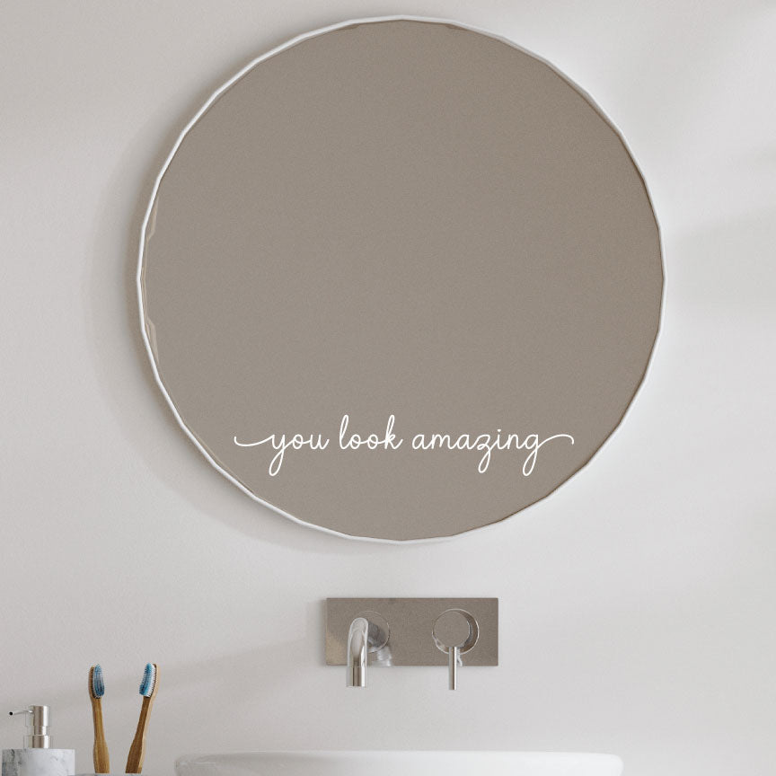 The "You Look Amazing" Vinyl Mirror Decal Sticker is a delightful and charming accessory designed to add a touch of positivity and style to any mirror surface. Made from high-quality vinyl material, this decal sticker features a beautiful and elegant script font that spells out the uplifting message, "You Look Amazing."